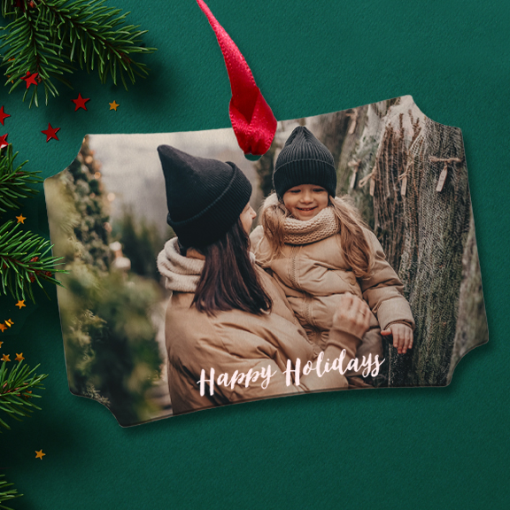 Celebrate the season with memories that shine bright. Our photo ornaments can be crafted in metal, maple wood, or porcelain finishes, beautifully showcasing your favorite moments in a timeless keepsake.